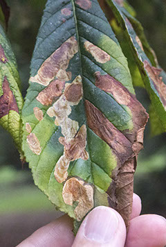 In der Wunde nistet sich der Pilz-Erreger ein und führt zur sog. „Knospenbräune“. Die Fruchtkörper des Pilzes überziehen die absterbenden Knospen über den Winter mit braun-schwarzen Härchen und sterben schließlich ab.